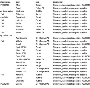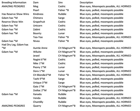 2026 Breeding Schedule