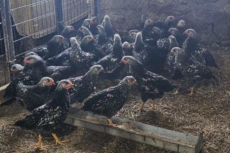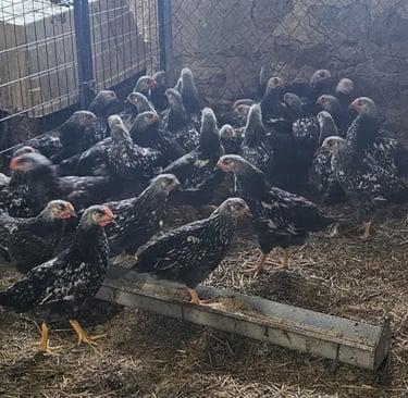 We love the hardiness and egg production of the Silver Wyandottes. We have fertilized eggs available every spring as well as day old and older chicks. We usually will have some young adults available in the fall as well!